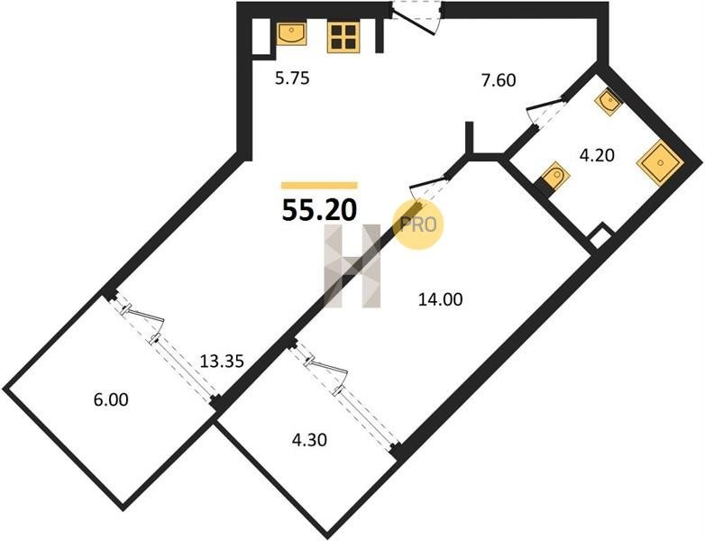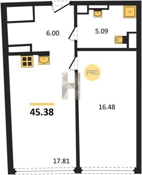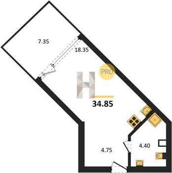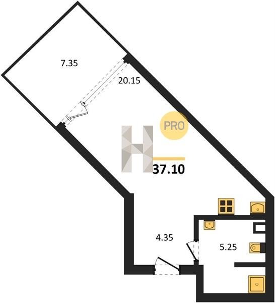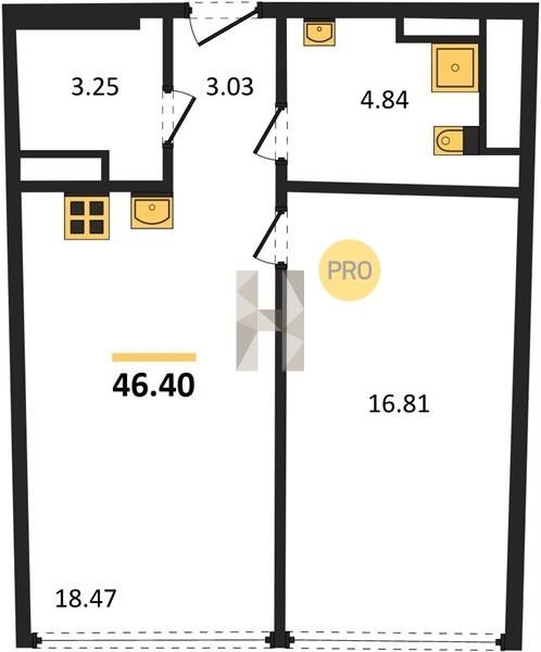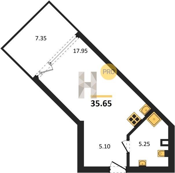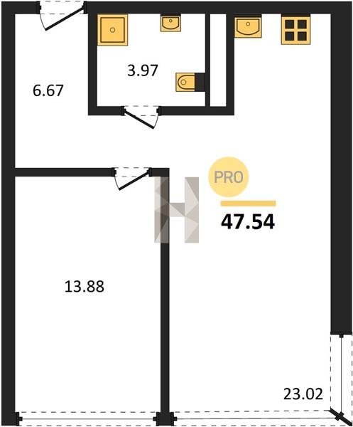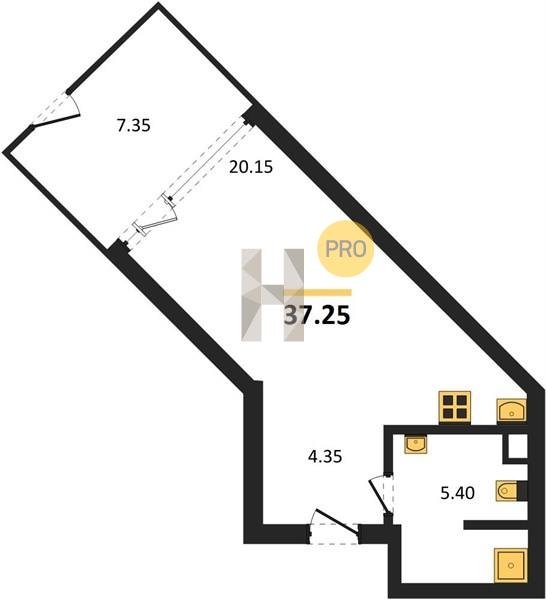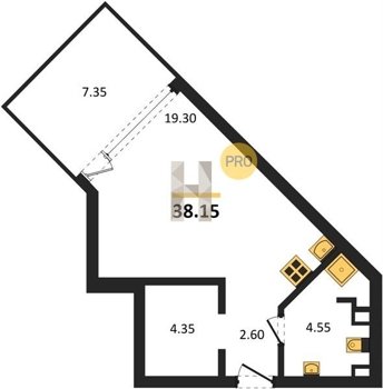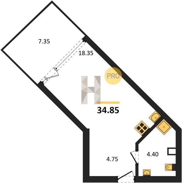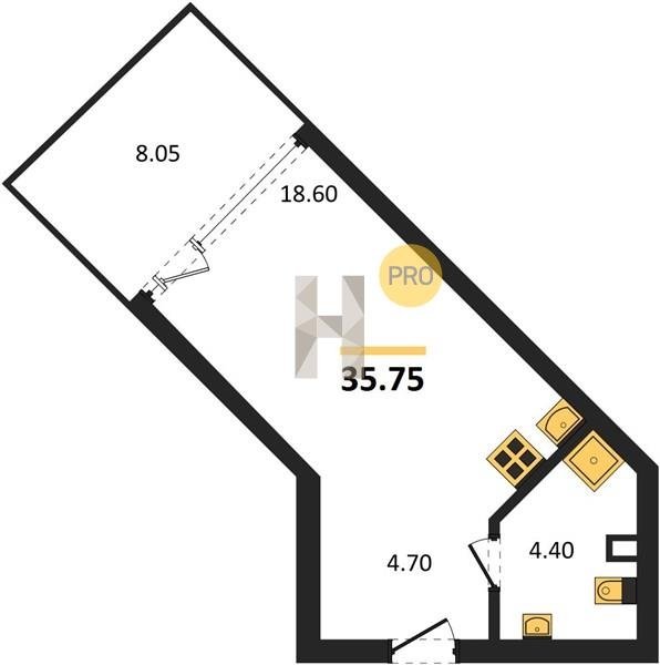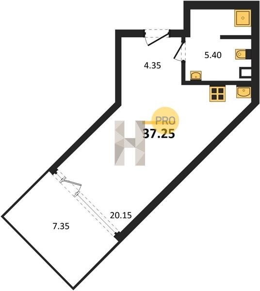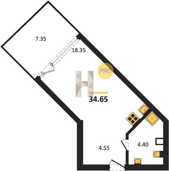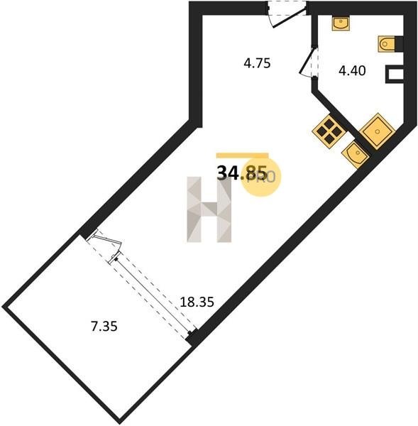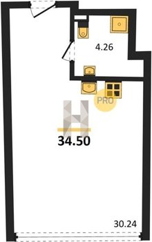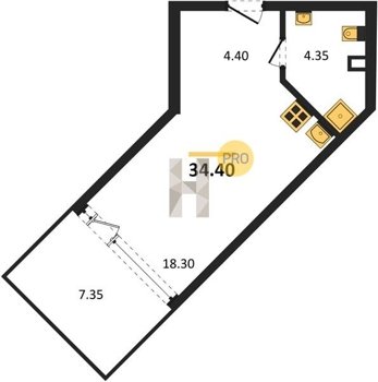 Площадь от 34.4 м2