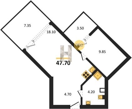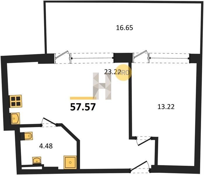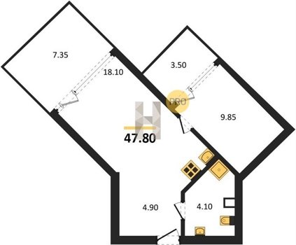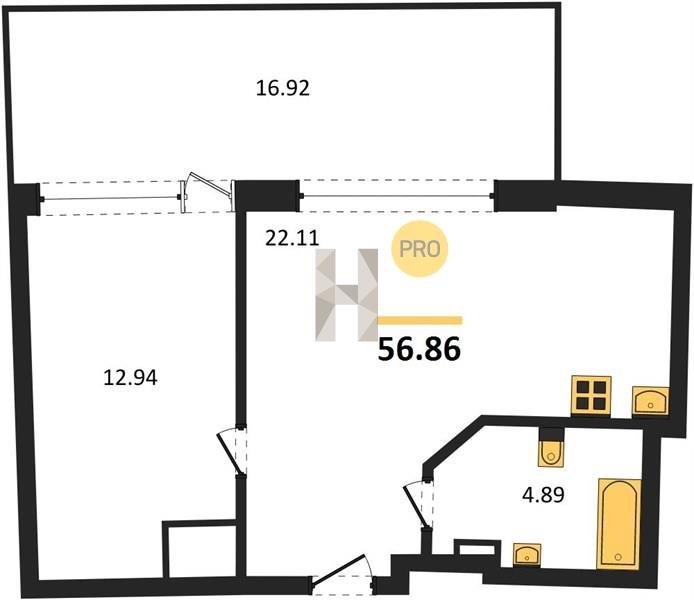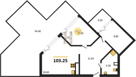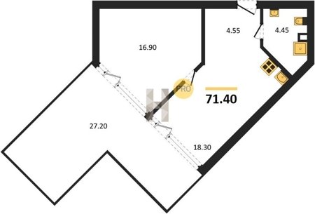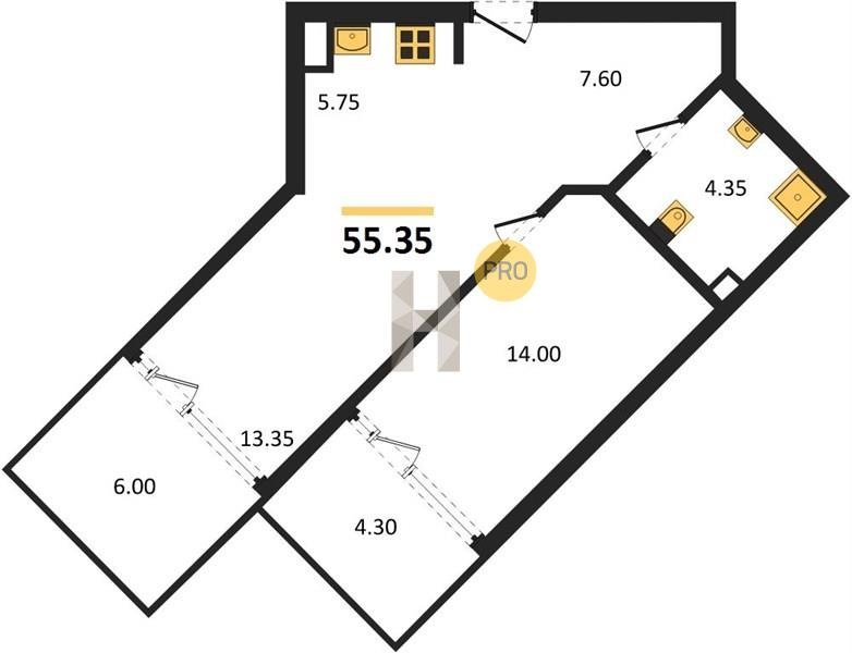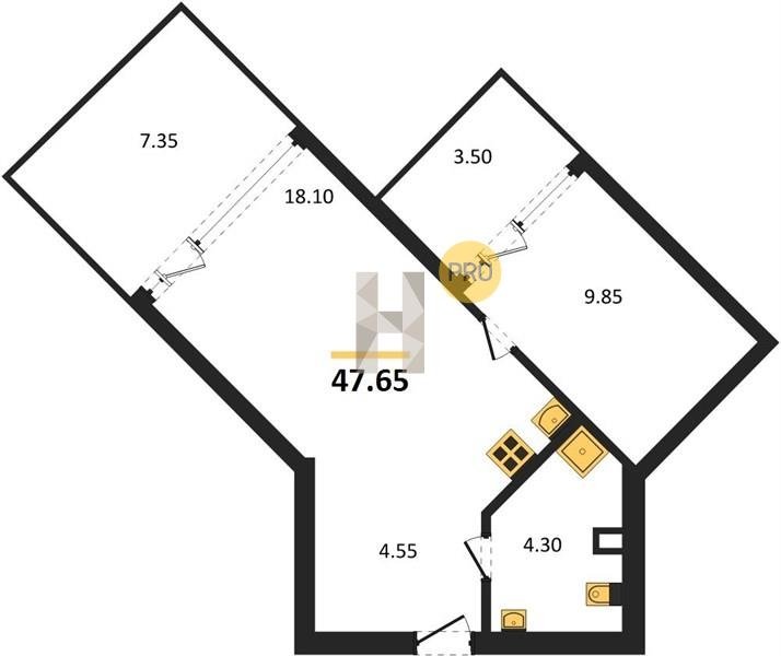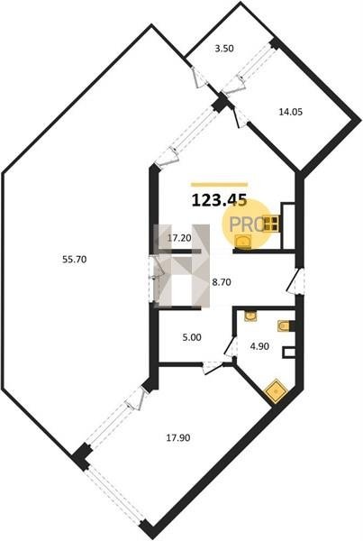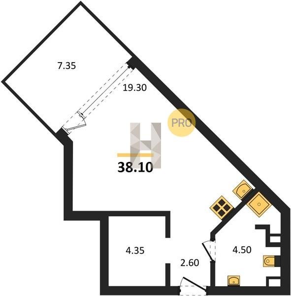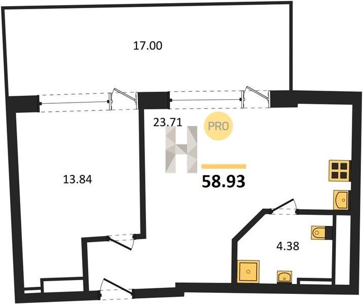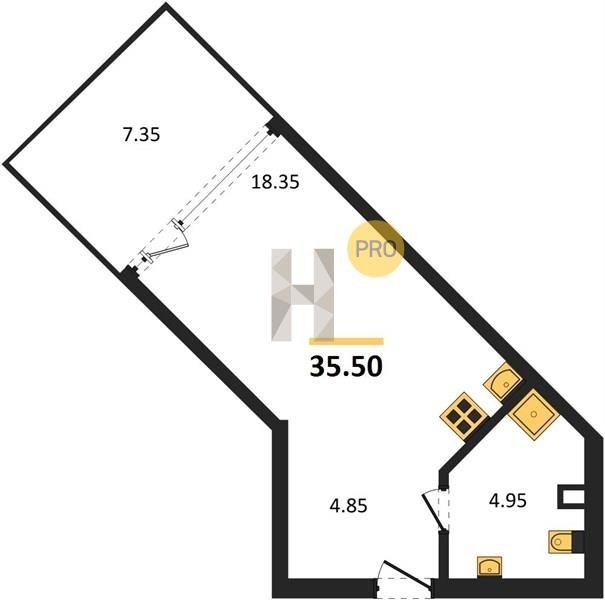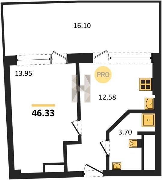 Площадь от 34.4 м2