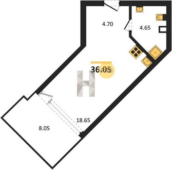 Площадь от 36.43 м2